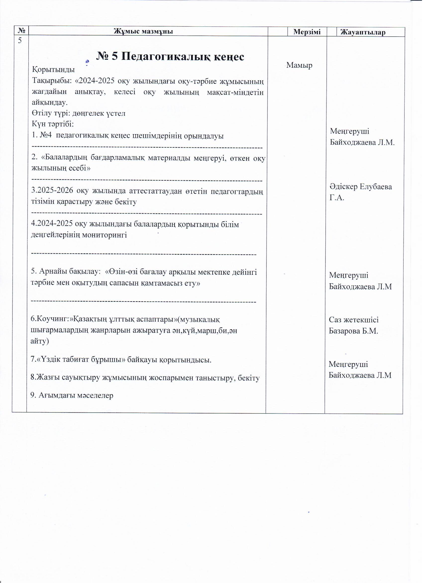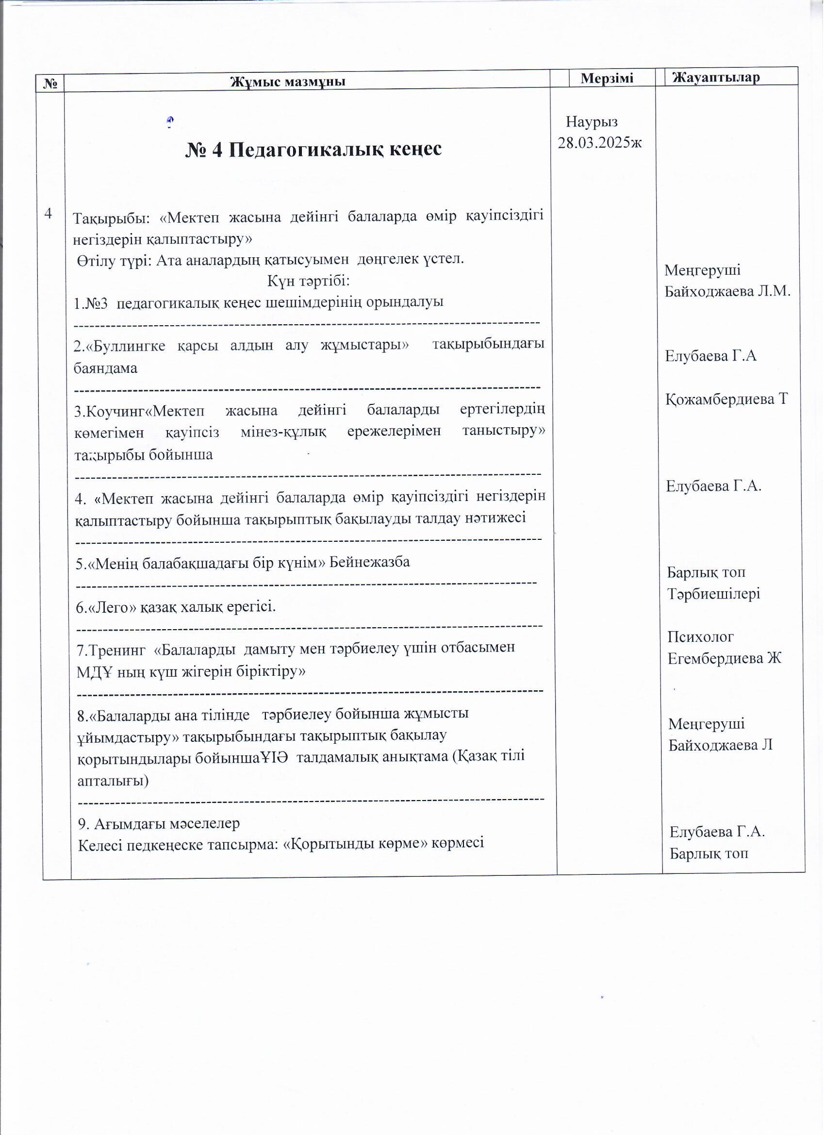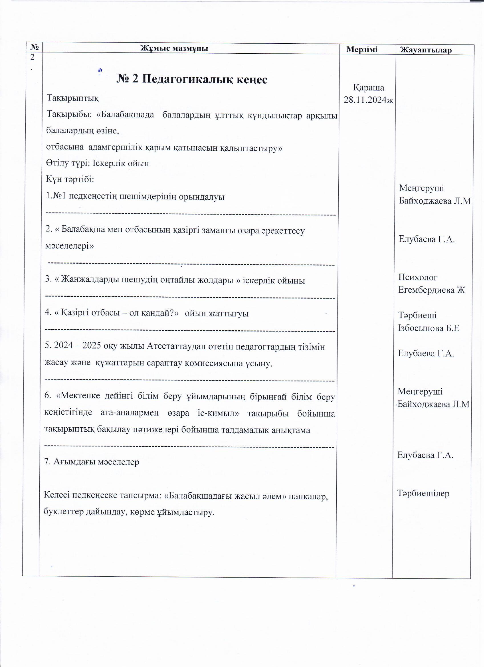 Ұйымдастылырған оқу қызетінің кестелері, күн тәртібі
